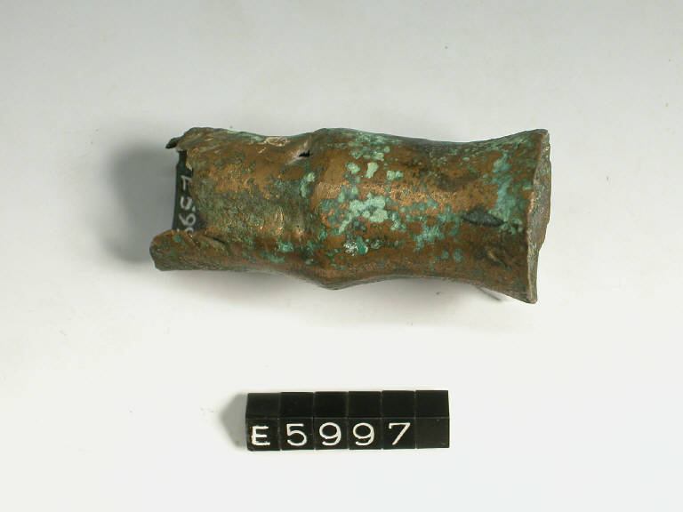 Vago in bronzo tubolare con costolatura mediana poco rilevata