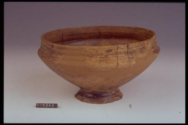 Coppa a corpo troncoconico, orlo cordonato, basso piede obliquo.