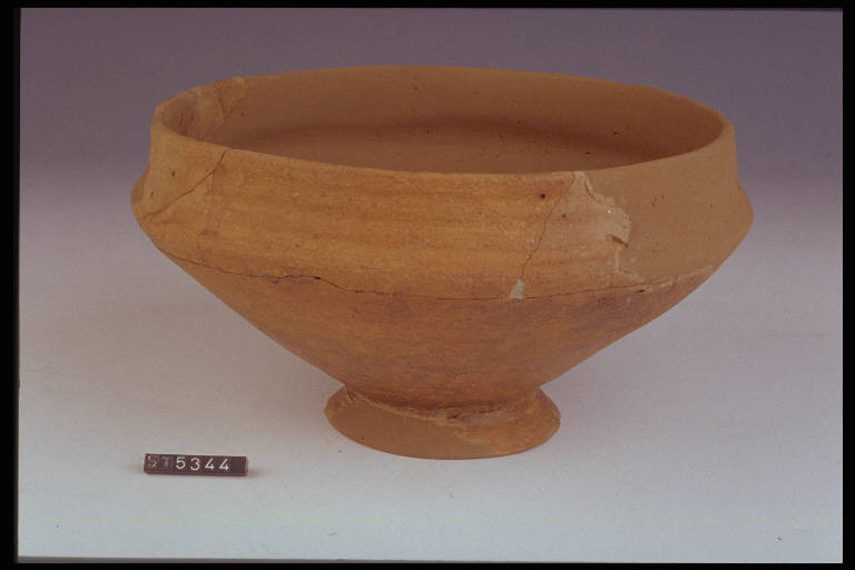 Coppa a corpo troncoconico, orlo cordonato, basso piede obliquo.