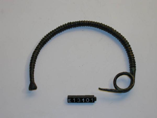 Fibula ad arco semplice lievemente ingrossato, decorata da fitta spirale incisa
