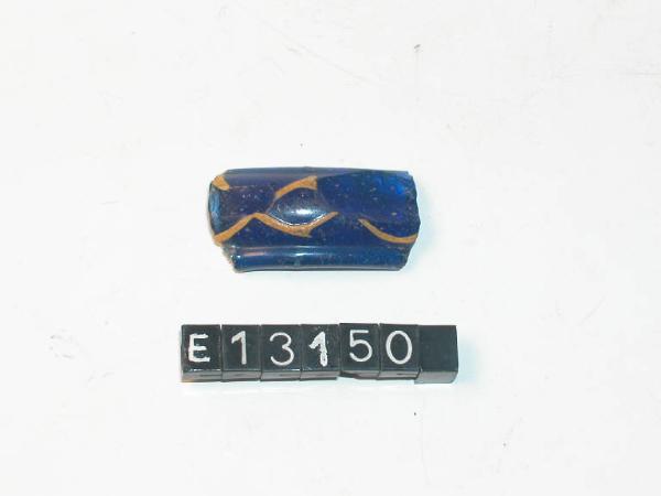 Frammento di armilla di vetro blu cobalto oltremare con costolatura mediana con decorazione a doppia linea ondulata giallo tuorlo