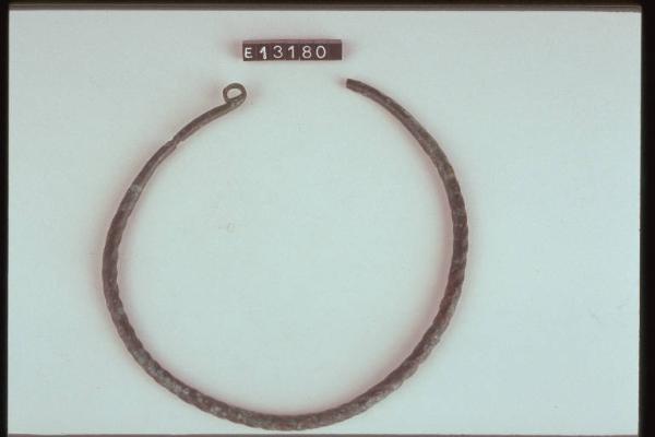 Torquis di verghetta di bronzo ritorta con estremità ripiegata a rotolo