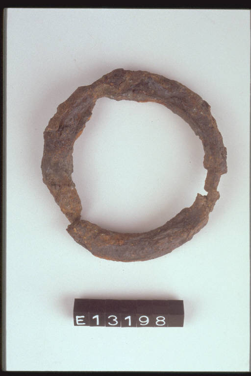 Anello in verghetta di sezione biconvessa con restringimento a tacca per l'inserimento di un gancio mobile