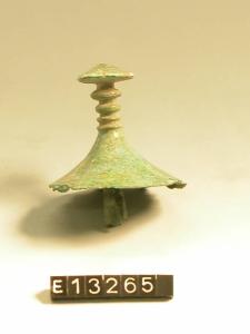 Elemento di bronzo a profilo troncoconico desinente con appendice troncoconica preceduta da una profilatura. All'estremità opposta è presente una verghetta forse per il fissaggio.