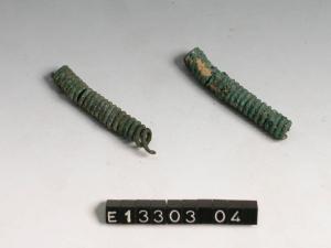 Elemento in nastro di bronzo di sezione triangolare avvolto a fitta spirale