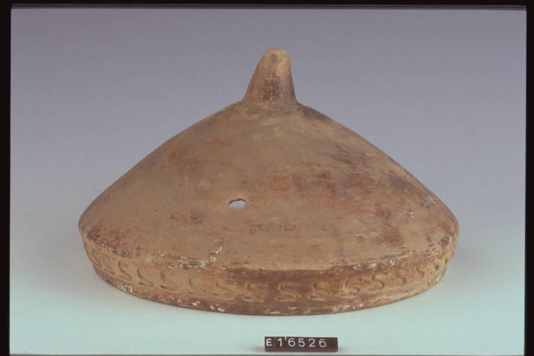 Coppa di doppiere decorata sull'orlo da una fila di S impresse.