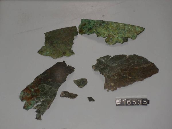 Frammenti di lamina bronzea pertinenti a recipiente