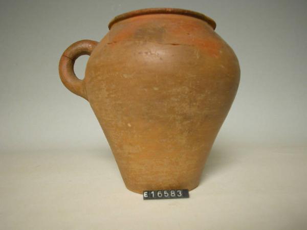 Boccale a corpo ovoide con ansa verticale ad occhiello.