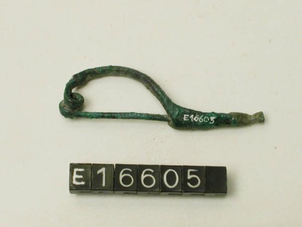 Fibula ad arco pieno di sezione lenticolare, con staffa desinente a piccola appendice troncoconica