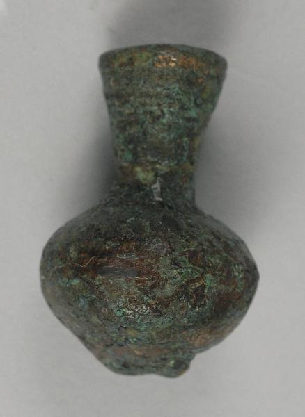 Terminazione di fibula a globetto e appendice troncoconica piana,decorato da incisioni trasversali.