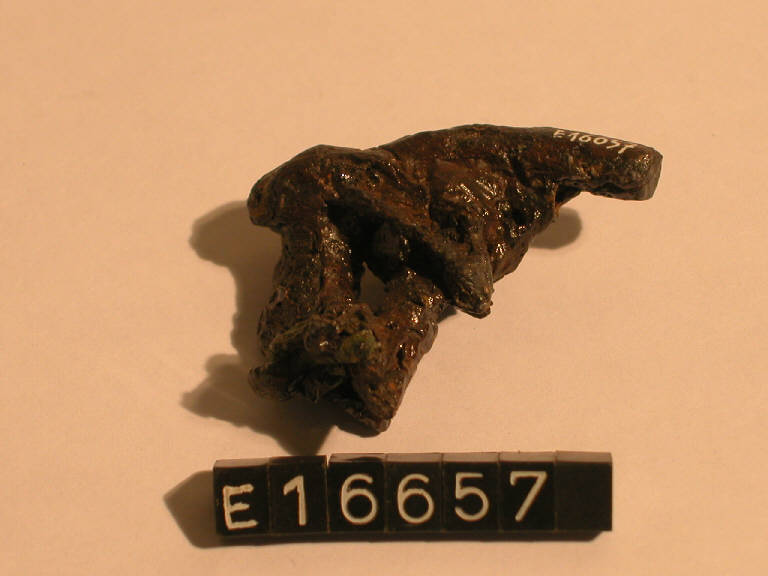 Frammento di fibula ad arco serpeggiante con rotelle, saldata a verghette di ferro ripiegate