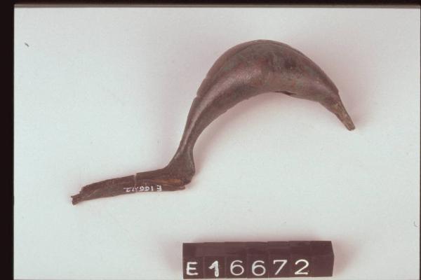 Fibula a navicella romboidale con decorazione lineare incisa sull'arco