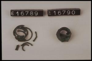 Anellino in verghetta di sezione biconvessa, recante saldato un filo di bronzo