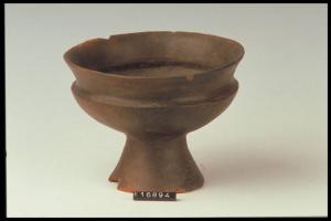 Coppa a corpo carenato, medio piede troncoconico, decorata da motivi a zigzag e a doppia linea incisi sotto la carena