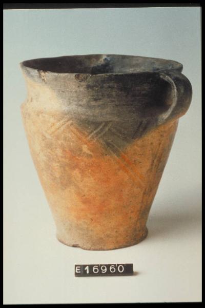 Boccale situliforme decorato a incisione da motivo a doppia linea di zigzag sotto la spalla e da motivo a "psi" sotto l'ansa"