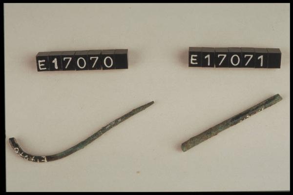 Verghetta di bronzo di sezione circolare ricurva (ardiglione di fibula ad arco serpeggiante?)