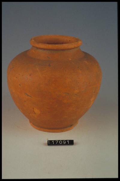 Olla ovoide con labbro esoverso con orlo ingrossato, breve collo svasato, alta spalla arrotondata, piede ad anello
