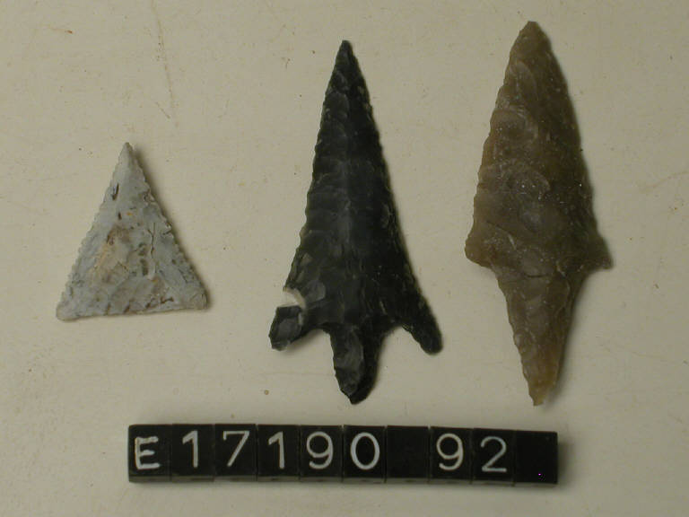 Punta di freccia a profilo triangolare in selce grigia