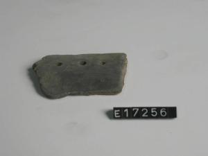 Frammento di orlo di piatto a tesa, provvisto di tre fori