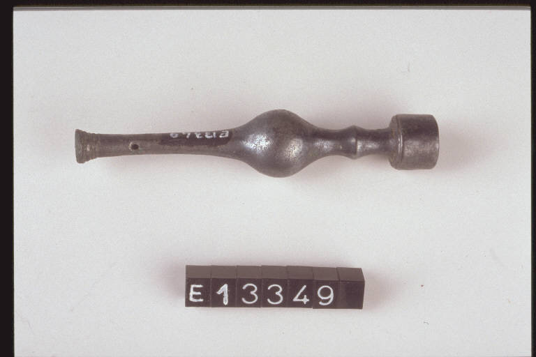 Elemento formato da una verghetta a sezione circolare desinente in una estremità a tronco di cono profilato, nell'altra a cilindro; presenta un ingrossamento globulare a 2/3 dell'altezza .