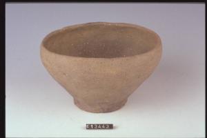 Ciotola troncoconica, con orlo rientrante e fondo piano.
