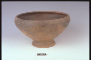 Ciotola troncoconica, con orlo rientrante e basso piede obliquo.