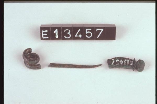 Frammenti di molla, ago e staffa desinente a bottone, pertinenti ad una fibula.