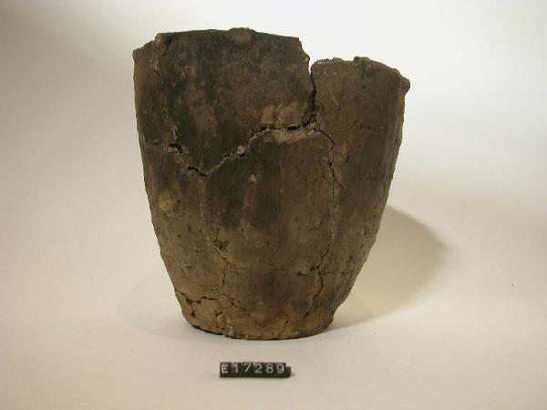 Vaso troncoconico, decorato da bugne lungo l'orlo e a metà altezza.