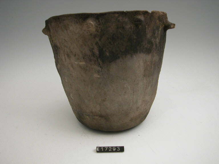 Vaso troncoconico, decorato da bugne equidistanti lungo l'orlo.