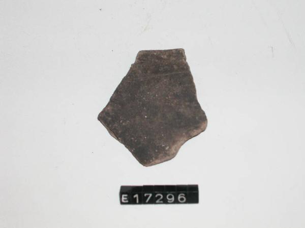 Vaso a bocca quadrata decorato a incisione da motivi a triangolo riempiti da linee parallele.