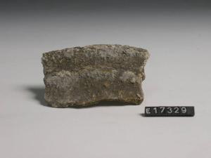 Frammento di vaso a corpo subcilindrico con orlo appena esoverso e cordone sotto la gola.
