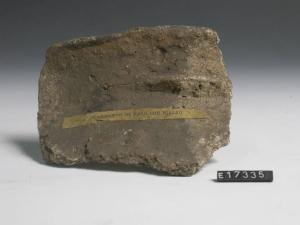 Frammento di dolio ovoide con alto labbro svasato, decorato da un segmento di cordone sotto l'orlo.