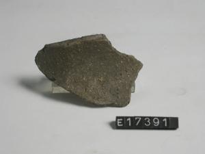 Frammento di recipiente globulare con breve labbro svasato.