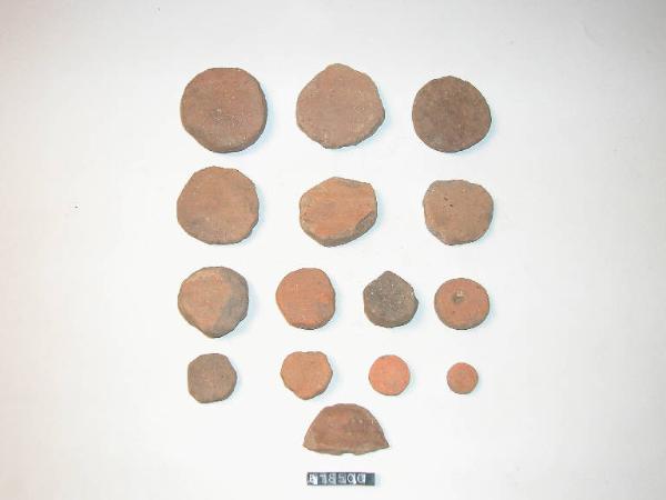 Rondelle o dischi in ceramica d'impasto di varia dimensione e varia composizione ceramica.
