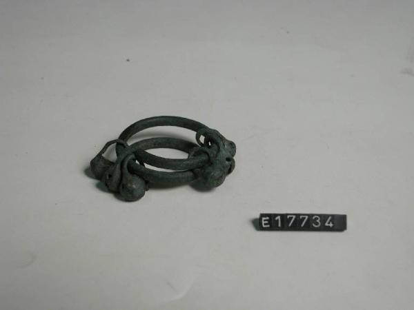 Armilla in verga avvolta in una spirale a due giri con sei pendagli a secchiello a fondo arrotondato.