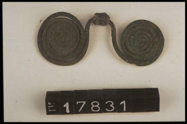 Pendaglio a doppia spirale in filo di bronzo.