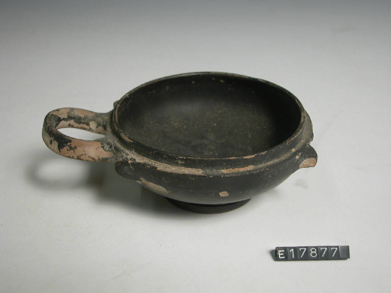 Lekane a vernice nera con anse a nastro fiancheggiate da due terminazioni a linguetta