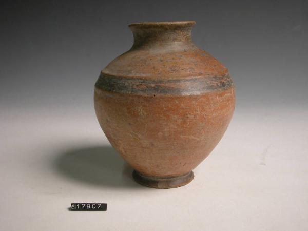 Olla globulare su piede; decorata sul corpo da una fascia sovraddipinta in nero