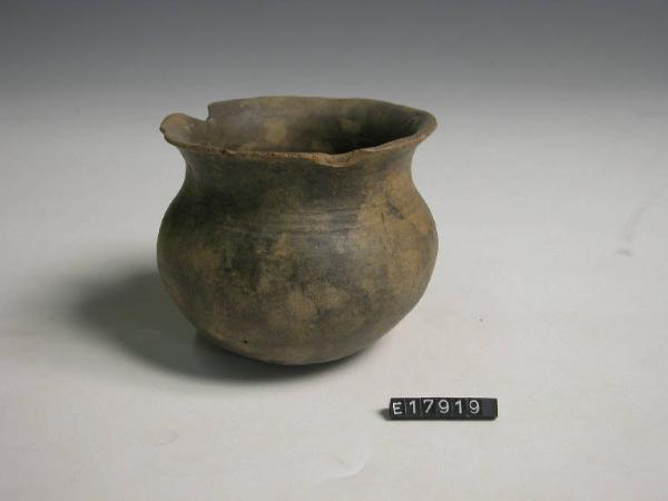 Bicchiere globulare con profilo sinuoso; sopra la spalla, motivo costituito da tre solcature.