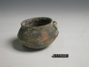 Coppetta a doppio tronco di cono con ansa orizzontale.