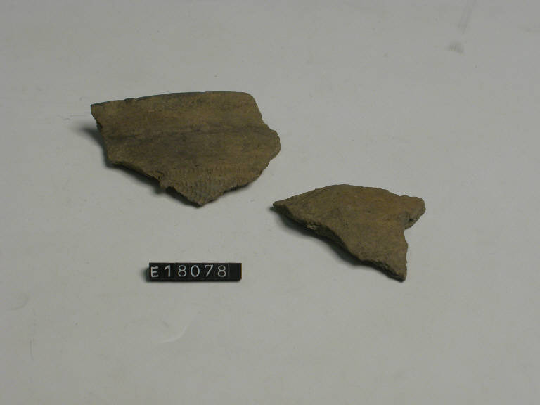 Frammento di orlo e parete in impasto con decorazione a falsa cordicella.