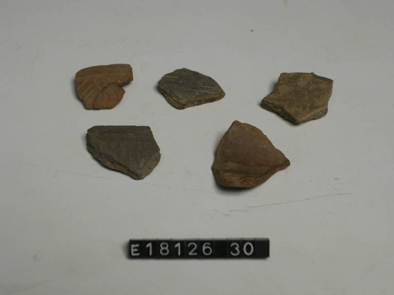 Frammento di parete decorato da una solcatura orizzontale e da fasci di solcature oblique