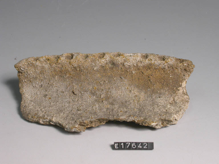 Dolio a labbro svasato con orlo decorato a impressioni circolari.