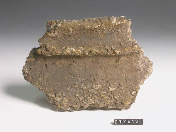 Recipiente ovoide con labbro svasato, orlo decorato a tacche e cordone sotto la gola.