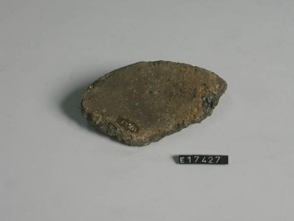 Frammento di piede a tacco con fondo piano e attacco di parete.