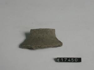 Recipiente con spalla pronunciata, labbro verticale e orlo arrotondato decorato da solcature sopra la spalla.