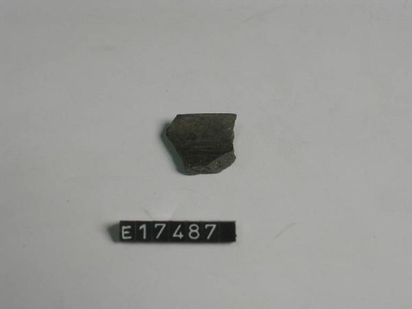 Frammento di orlo di bicchierino con superficie nera lucida.