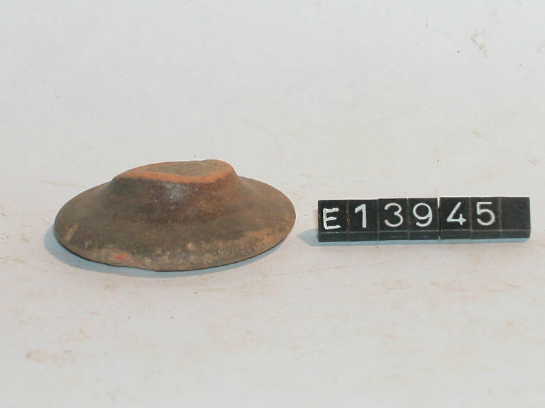 Piccolo piede svasato di bicchiere a portauovo con tracce di dipintura esterna.