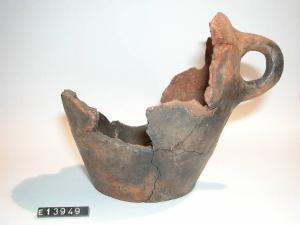 Boccale a corpo ovoide con ansa verticale a occhiello.