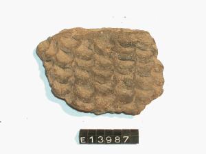 Frammento di parete di olla decorata a file orizzontali di unghiate leggermente oblique.